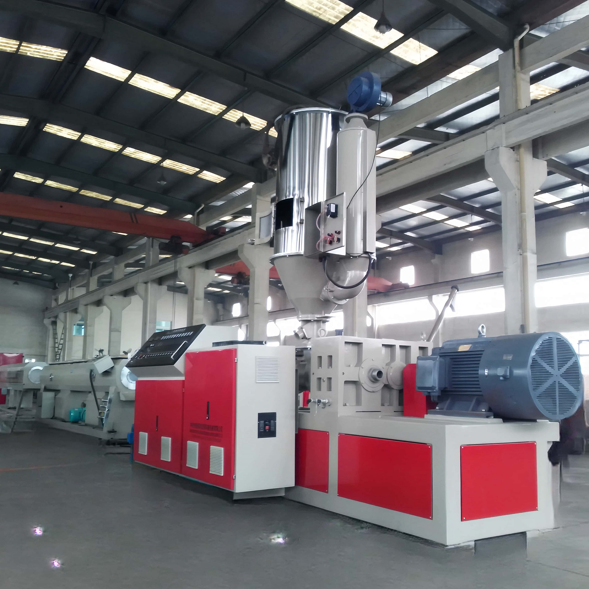 ? 配套单螺杆挤出机,适合 PE 树脂挤出,产量高,最高产量可达 1000 公斤每小时